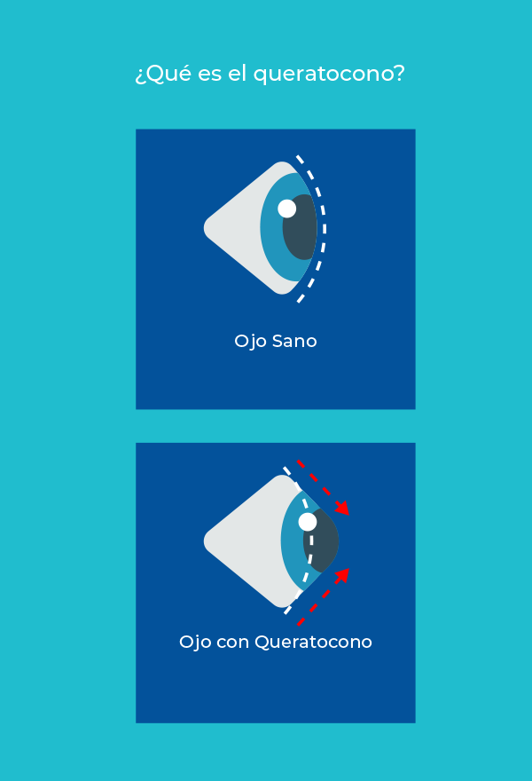Conforme avanza esta enfermedad, la córnea cambia lentamente de una forma redonda a una cónica. El ojo sobresale y esto causa problemas de visión. Generalmente, afecta ambos ojos aunque el grado evolutivo puede ser diferente.